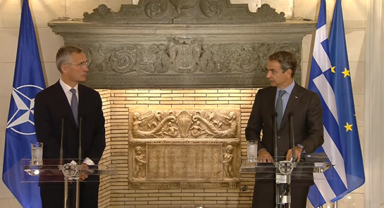 Τα θέματα που κυριάρχησαν στις συζητήσεις που είχε σήμερα στο Μέγαρο Μαξίμου ο πρωθυπουργός Κυριάκος Μητσοτάκης με τον γενικό γραμματέα του ΝΑΤΟ, Γιενς Στόλτενμπεργκ ήταν οι εξελίξεις στην Ανατολική Μεσόγειο και τα γεγονότα τα οποία απειλούν την ειρήνη και τη σταθερότητα, αλλά και την ίδια τη συνοχή του ΝΑΤΟ.