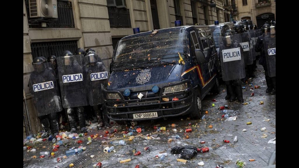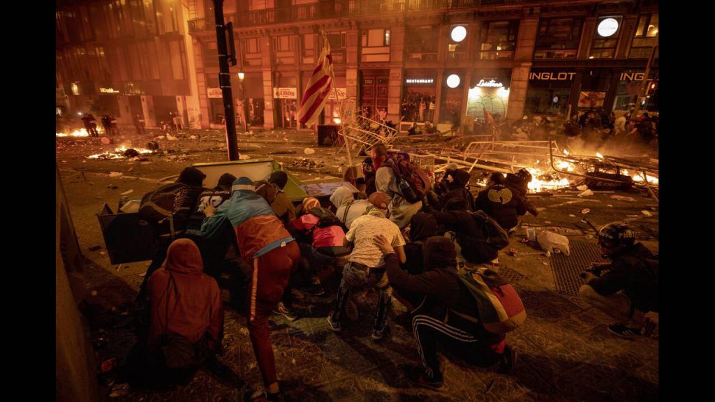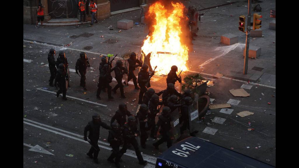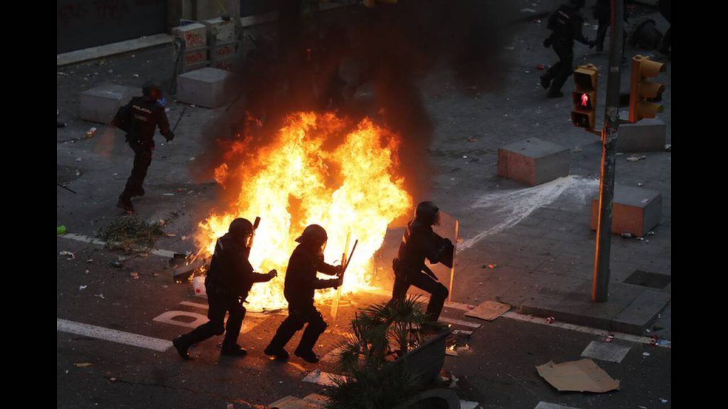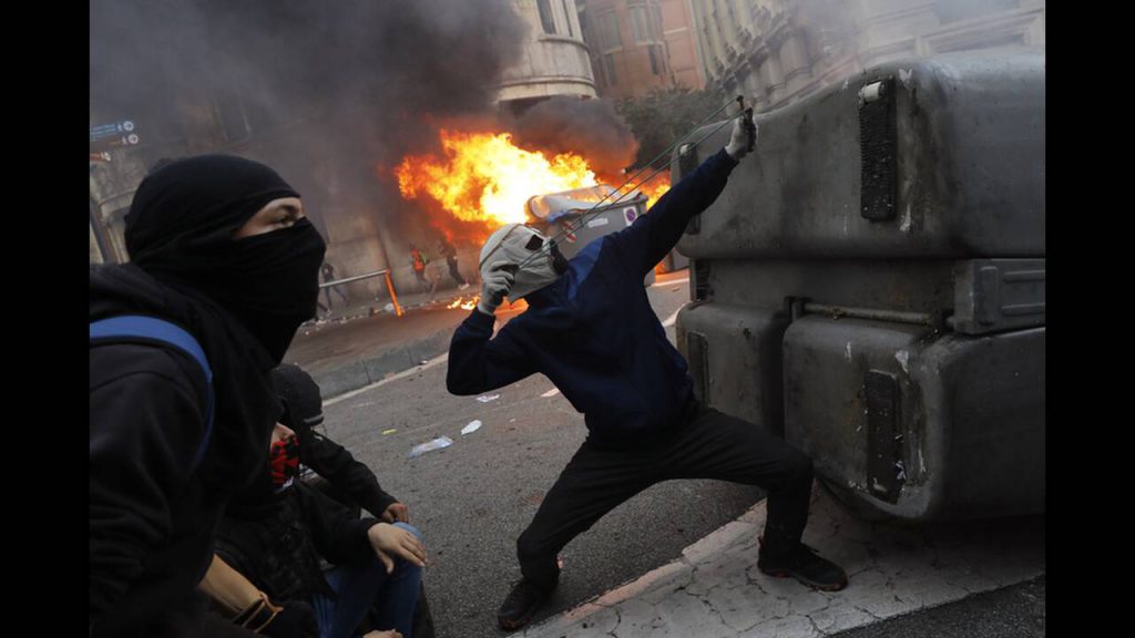 Αυτές οι βίαιες συγκρούσεις, οι οποίες έχουν βυθίσει στο χάος το κέντρο της πόλης, σημειώνονται κατά την πέμπτη μέρα κινητοποιήσεων διαμαρτυρίας ενάντια στην καταδίκη των Καταλανών αυτονομιστών ηγετών σε βαριές ποινές κάθειρξης από την ισπανική δικαιοσύνη για τον ρόλο τους στην απόπειρα απόσχισης το 2017.