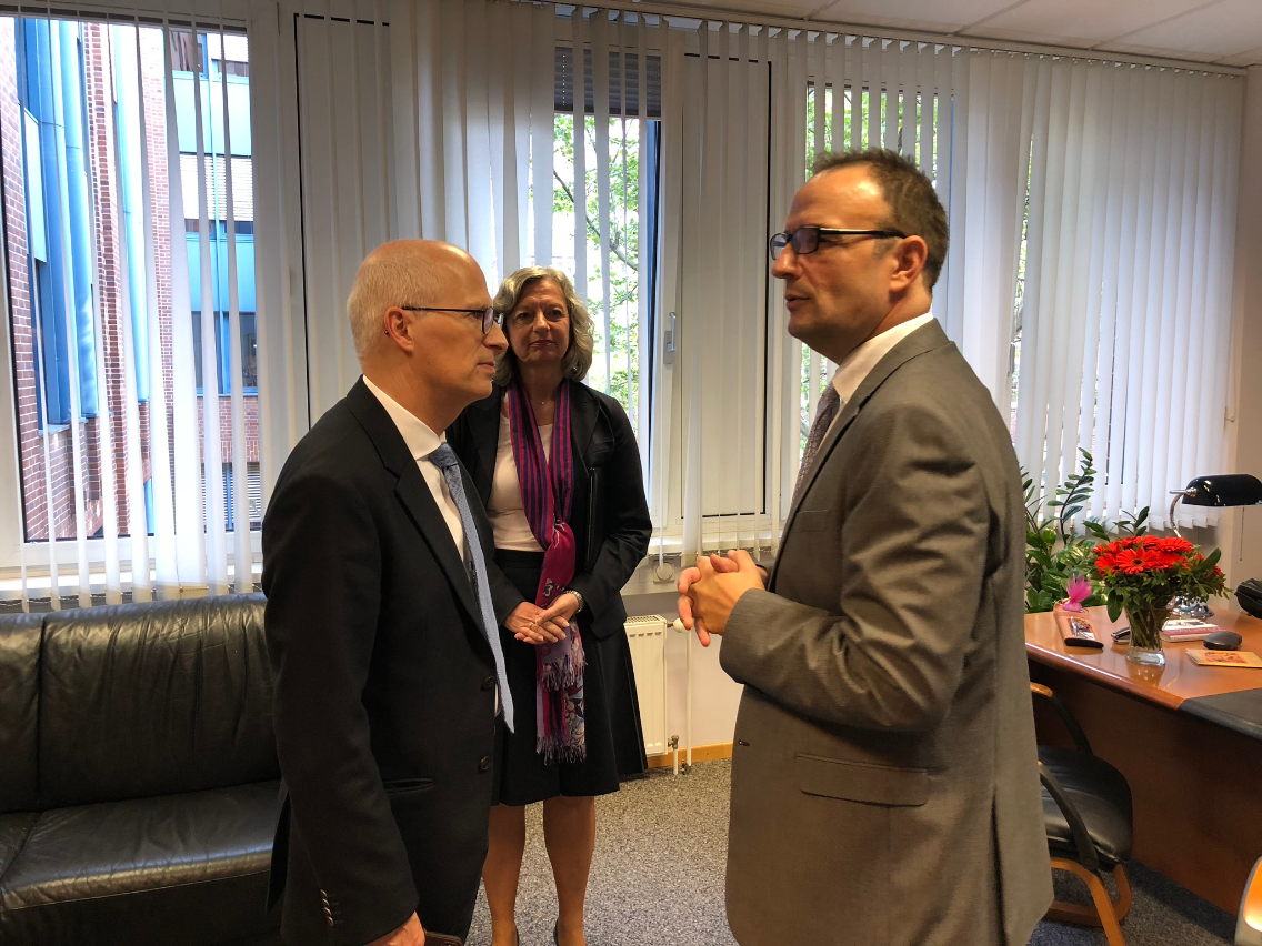 Ο πρώτος Δήμαρχος και πρόεδρος της γερουσίας του Αμβούργου κ. Peter Tschentscher τίμησε με την παρουσία του το Γενικό μας Προξενείο. Νομίζω ότι ήταν και το μόνο που επισκέφθηκε. Ο Γενικός μας Πρόξενος κ. Μιχάλης Αγγελόπουλος καλωσόρισε τον Γερμανό Δήμαρχο και στη συνέχεια του σύστησε τους προέδρους των Συλλογών και Κοινοτήτων του Αμβούργου.