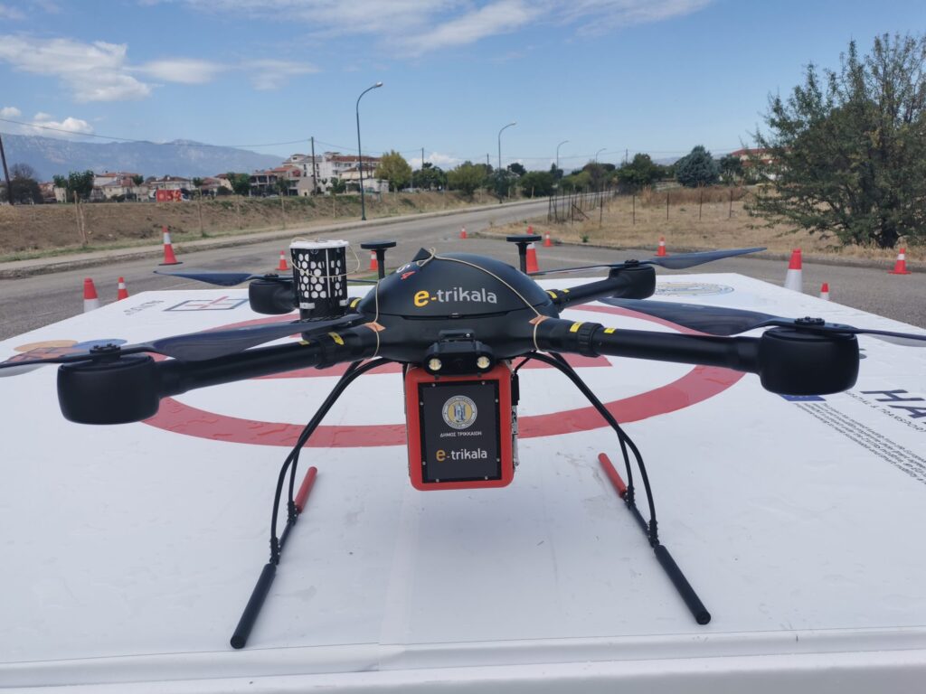 Το πρώτο πανευρωπαϊκώς drone που θα μεταφέρει φάρμακα «πέταξε» δοκιμαστικά το μεσημέρι τις Τρίτης 21 Σεπτεμβρίου 2021 από τα Τρίκαλα, στο πλαίσιο της Ευρωπαϊκής Εβδομάδας Κινητικότητας. Ο Δήμος Τρικκαίων και η e-trikala ΑΕ υλοποιούν μια υπηρεσία που, μελλοντικά, θα μπορεί να παρέχει και να προσφέρει στους πολίτες, μεγάλες ωφέλειες για την υγεία τους.